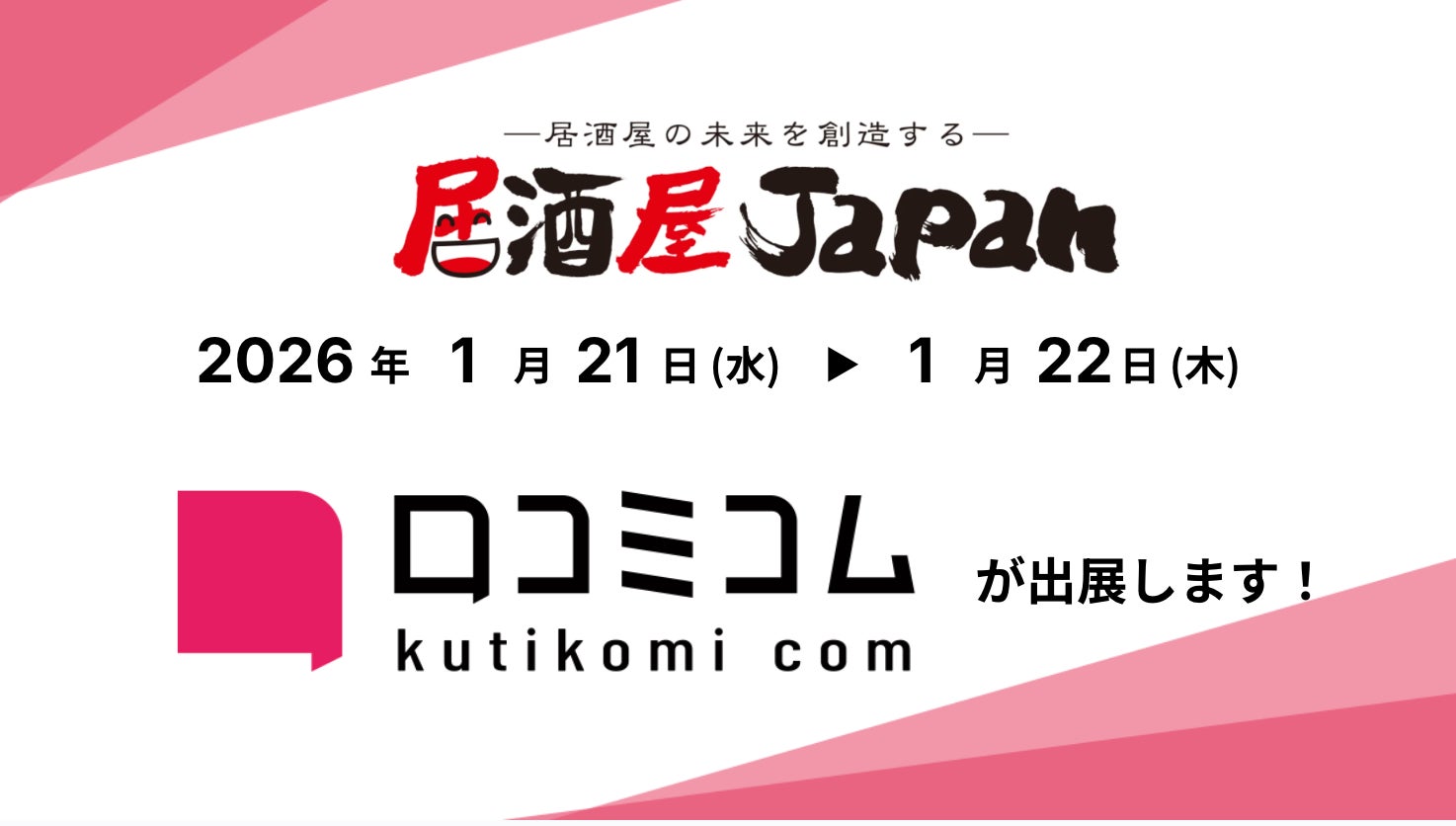 「口コミコム」が居酒屋JAPAN2026in東京に出展 ー1月21日~1月22日 @池袋サンシャインシティー