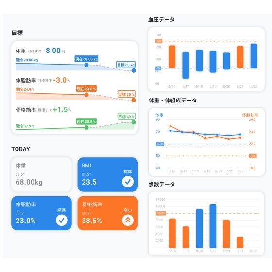 Bluetooth(R)通信で記録したデータを自動的にアプリに反映できる「Bluetooth(R)通信機能搭載タイプ(HCM-AS03BTWH)」と、画面を撮影して手動でアプリに登録できる「通常タイプ(HCM-AS04WH)」の2種類をご用意しています。Bluetooth(R)通信機能搭載タイプは、アプリによる画面撮影での登録にも対応しており、用途に合わせて使い分けが可能です。