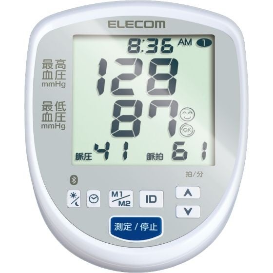 大きな文字パネルとシンプルな操作で、誰でも使いやすい上腕式血圧計です。測定データは、専用スマートフォンアプリ「ELECOM Healthcare」に記録でき、血圧の変化を簡単に確認できます。