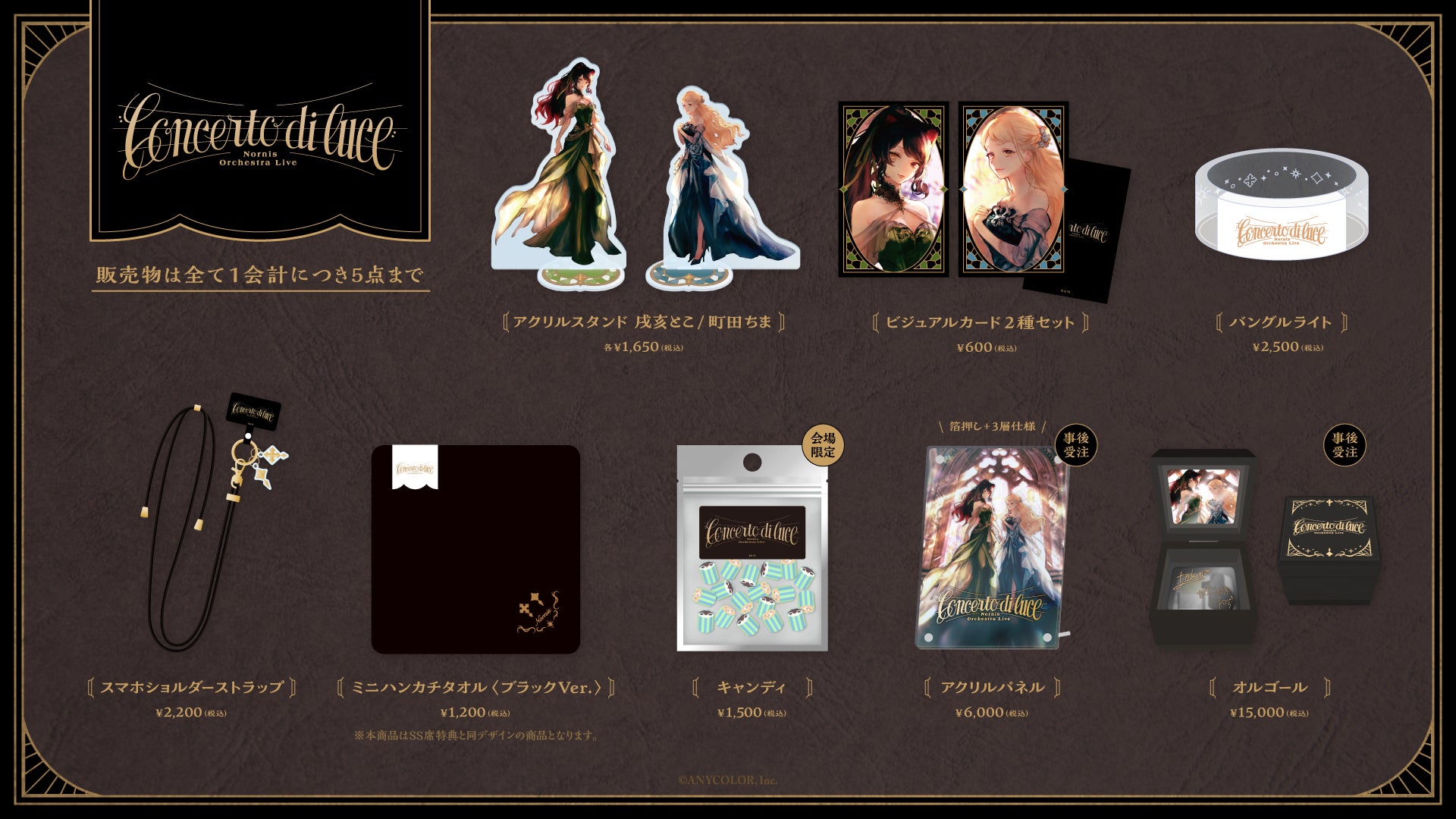 また、「Nornis Orchestra Live『Concerto di luce』」グッズは、当日会場販売の実施も決定しております。