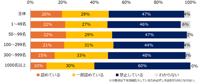 【図2】現在、社員の副業・兼業を認めていますか?(企業規模別)