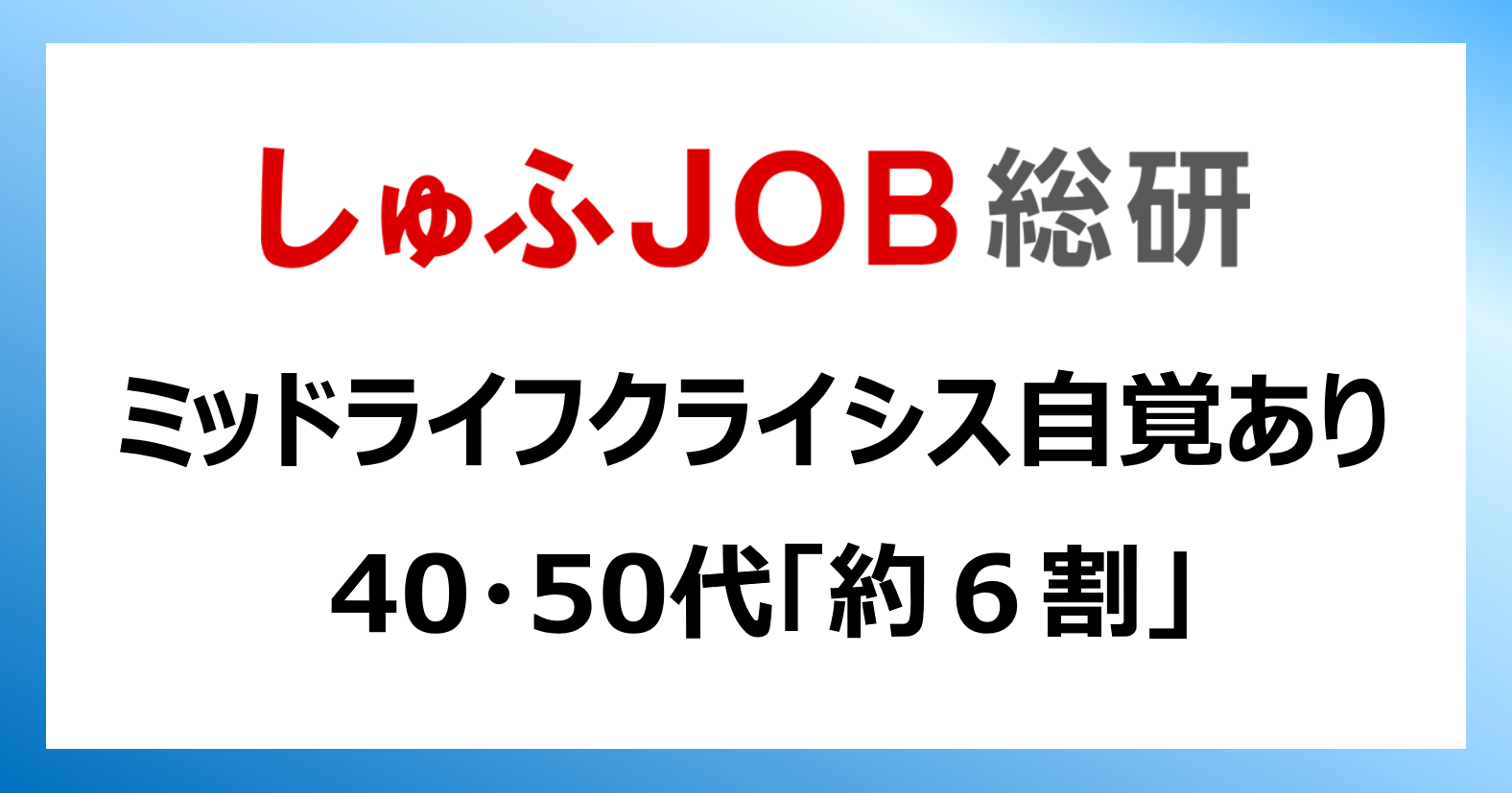 仕事と家庭の両立を希望する主婦・主夫層の実情や本音を探る調査機関『しゅふJOB総研』(運営会社:株式会社ビースタイル ホールディングス 本社:東京都新宿区、代表取締役:三原邦彦)は、『ミッドライフクライシス』をテーマに仕事と家庭の両立を希望する主婦・主夫層にアンケート調査を行いましたので以下にご報告します。(有効回答数:552件)