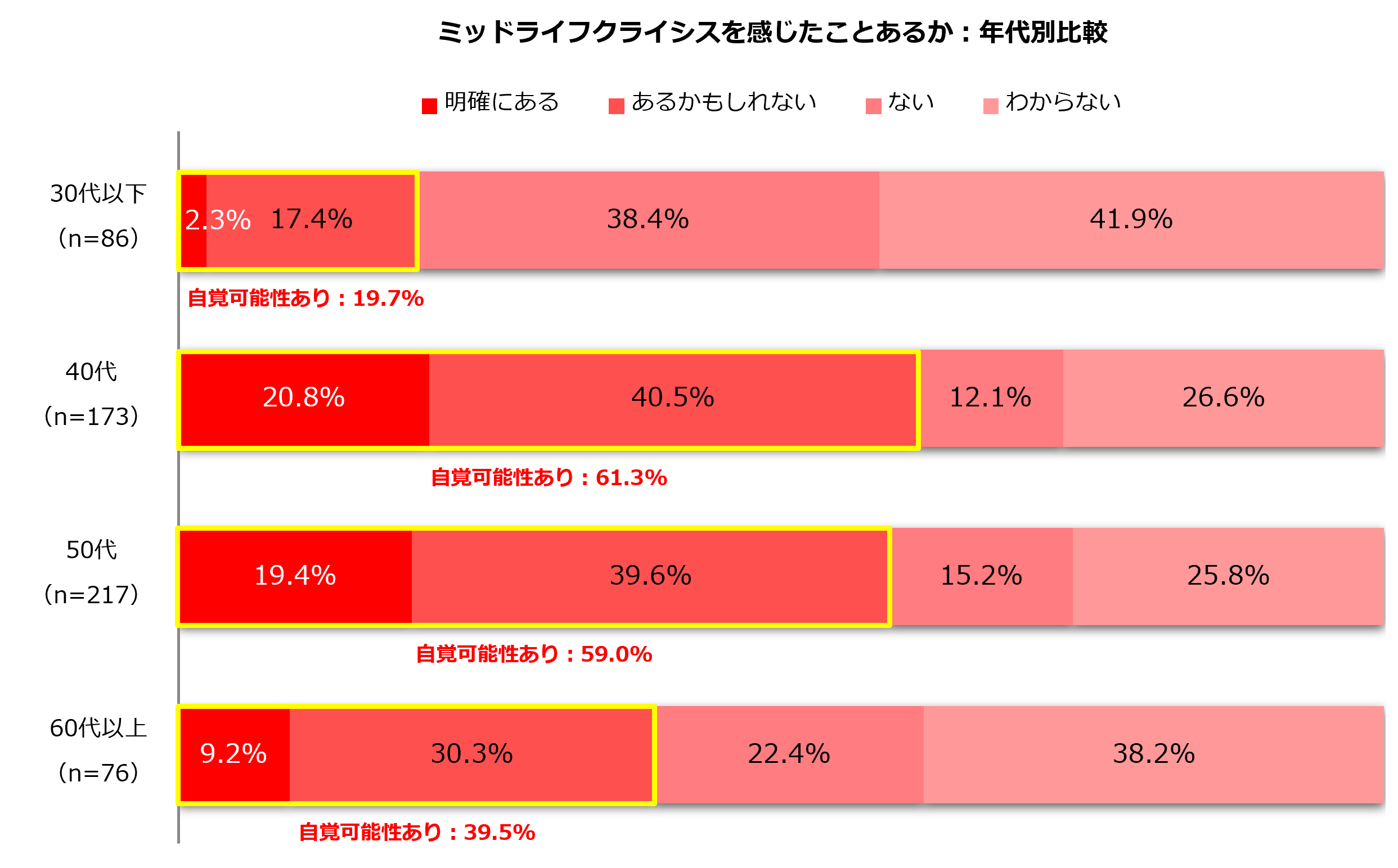 3.ミッドライフクライシスを感じたことあるか:年代別比較