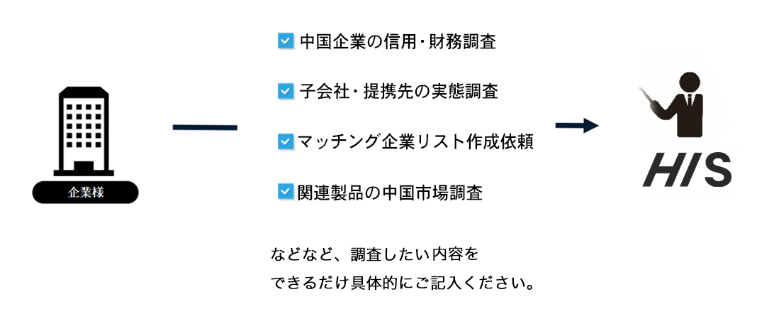 このたびHISときらぼし上海は、企業の海外進出・戦略に関わる市場調査業務を共同で実施する「CHINA(チャイナ) RESEARCH(リサーチ)」サービスを開始し、両社が得意とするサービスとノウハウ、ネットワークを生かし、財務状況に係る情報や経営状況を適切に把握し、中国企業や市場を分析し調査を行います。