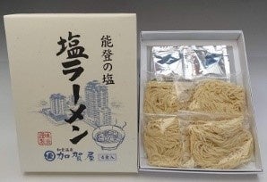 商品説明:加賀屋オリジナル塩ラーメンです。8世紀頃より能登半島で受け継がれてきた昔ながらの塩づくりの手法「揚浜式塩田」を日本で唯一引継いでいる