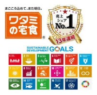 「ワタミの宅食」は、日替わりのお食事と“まごころ”をお届けすることで“社会を支えるインフラ”となることを目指し、事業を展開しています。お弁当・お惣菜は、お客さまと同じ地域に住む“まごころスタッフ”がお届けしています。毎日約24万食のお弁当・お惣菜をお届けしており、病者・高齢者食宅配市場「売上シェア13年連続 No.1」※(2010年~2022年)を達成しています。2020年3月には、業界として初めて、自社弁当容器を回収し、新たな容器としてリサイクルする取り組みを全国に展開するなど、SDGsの目標達成にも貢献しています。