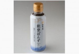 商品説明:加賀屋総料理長厳選の食材を用いたオリジナルの「いしるぽんず」。ぽんずには、国産すだち果汁のほか金沢・大野の本醸造丸大醤油、 本みりんを使用し能登半島で古くから作られてきた魚醤・いしるの強い旨みが特徴です。