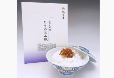 商品説明:カルシウム豊富なちりめんに、山椒をまぶした加賀屋オリジナル商品です。加賀屋の朝食でもご愛顧いただいており、御飯のお供や麺類の薬味と食卓で大活躍です。