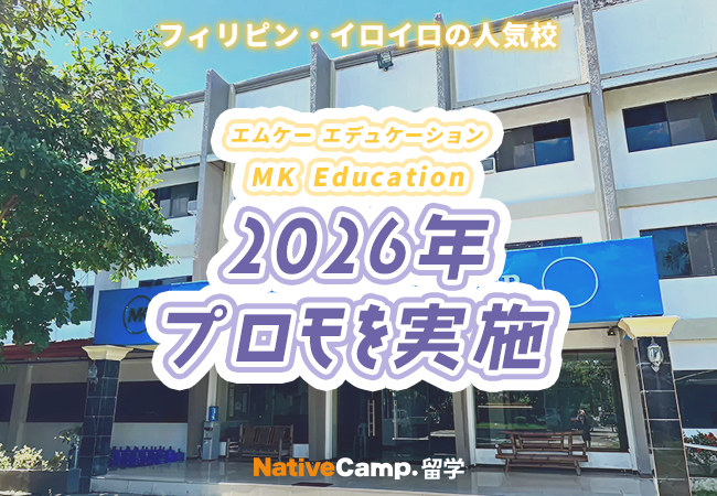 ネイティブスピーカーと回数無制限のオンライン英会話サービス「ネイティブキャンプ英会話」を展開する株式会社ネイティブキャンプ(東京都渋谷区 代表取締役:谷川国洋)は、海外留学エージェントサービス「ネイティブキャンプ留学」において、フィリピン・イロイロの語学学校 MK Education にて、「2026年プロモ」を実施いたします。