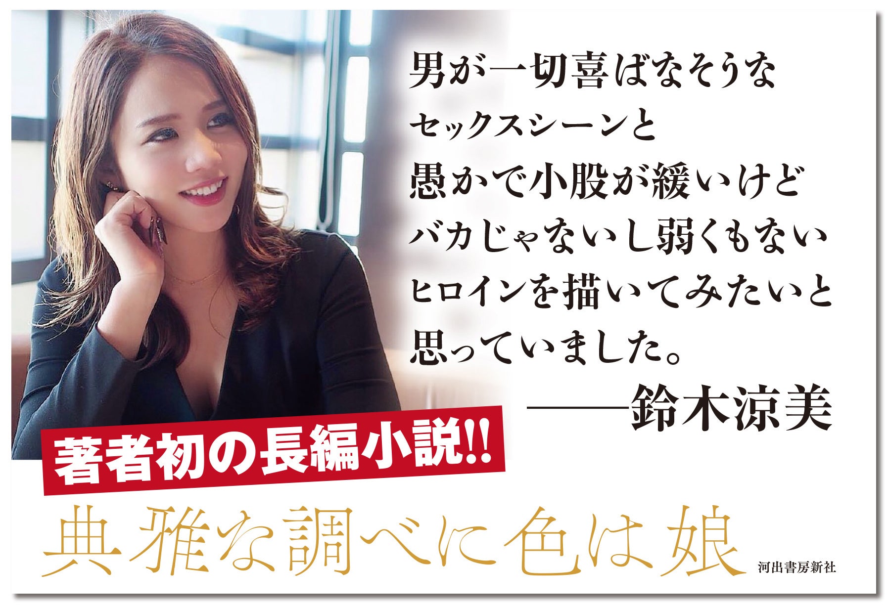 株式会社河出書房新社(東京都新宿区/代表取締役 小野寺優)は、小説、エッセイ、メディア出演など多方面で活躍する作家、鈴木涼美さんの最新小説『典雅な調べと色は娘』を2025年11月12日に刊行いたします。