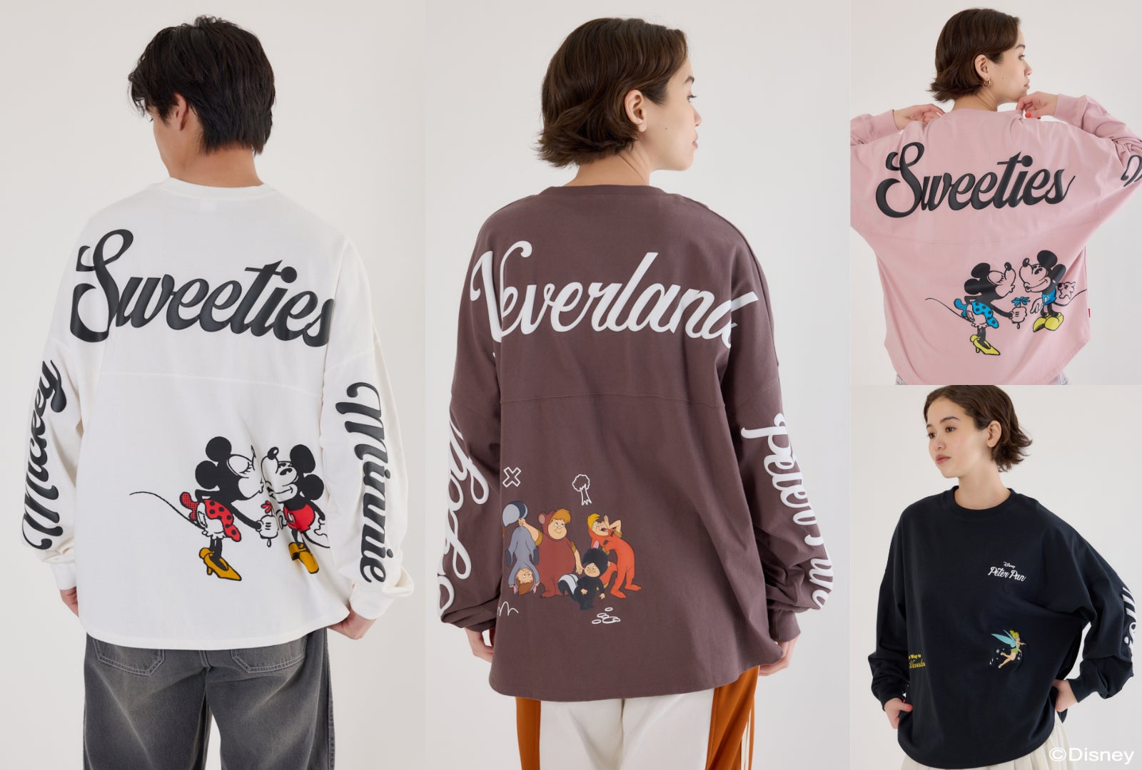 ブランド初となる「ピーター・パン」スペシャルアイテムは、劇中に登場する人気キャラクターや、ストーリーの情景をデザインに落とし込み、スペシャルなデザインに仕上げました。発売するたびに大好評の「ミッキーマウス&ミニーマウス」のアイテムは、今回コミックス版からピックアップしたレトロアートを用いて、オリジナル感満載のデザインに。RODEO CROWNS WIDE BOWLのアイコンアイテムでもあるデニムGジャンや、春先まで活躍するパーカーやカットソートップス、デザインはもちろん、実用性も兼ね備えた雑貨など、計8つのラインナップです。ファミリーやカップルでお揃い・シェアコーデが楽しめるユニセックスアイテムも展開しています。
