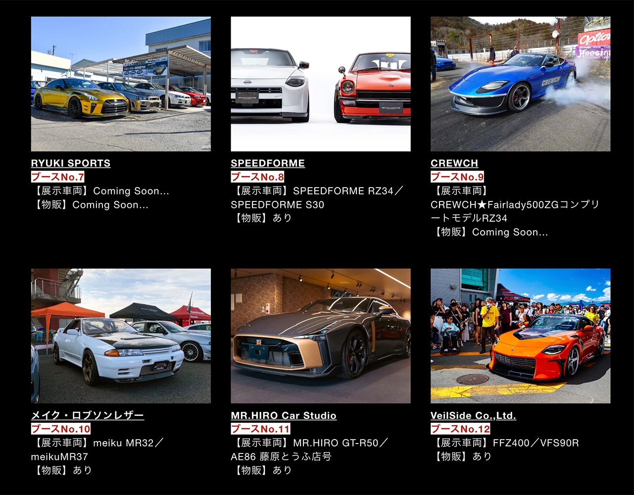 RE雨宮 アマさん、トップシークレット“スモーキー永田”さん、ヴェイルサイド横幕さん、ラフ・ヴェルト中井さんなどカスタムカー業界の重鎮たちも来場予定です。