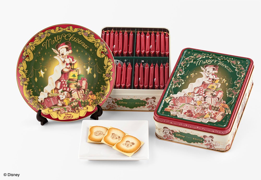 【東京ばな奈】サンタ姿の「ミッキーマウス」とメリークリスマス!スペシャル缶とイヤープレート付きセットが数量限定登場。通販先行受付も開始