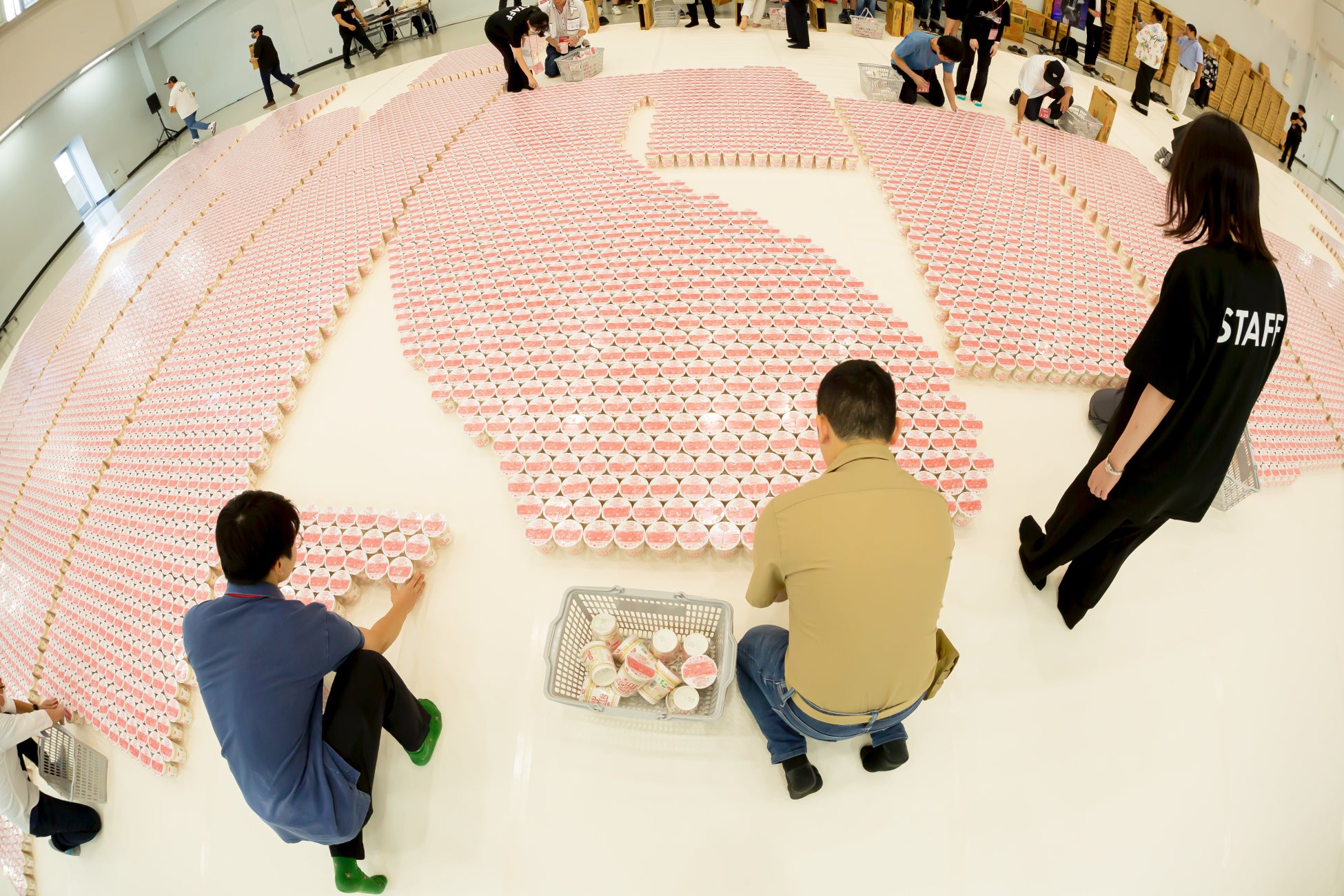 VTuber獅白ぼたんがギネス世界記録™達成!約3万個のカップヌードルを並べて巨大文字をファンと共に作成