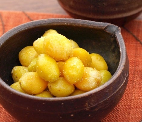 ぎんなんを二度揚げし、サクッとした食感に仕上げ、程よい塩味とぎんなん独特のほろ苦さがクセになる味わい。
