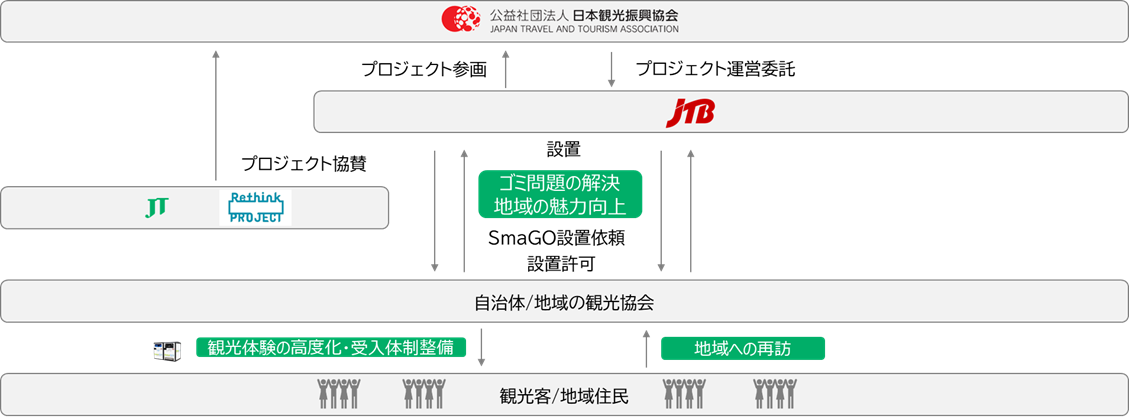 JTBは、「交流創造事業(※2)」を事業ドメインとし、全国に広がるネットワークを活かしさまざまな人流・物流・商流の創造による交流人口の拡大を通じて、地域や観光事業者の課題を解決する支援を行っています。その一環として、これまで、観光地における受入課題に関する支援を実施してきました。この度、日観振の本プロジェクト始動に伴い、本プロジェクトの目的に賛同し、参画することに至りました。