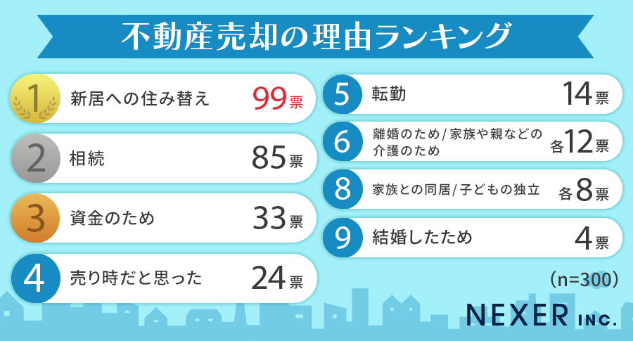 実際に他の方がどのような理由で不動産を売却することが多いのか、気になりますよね。