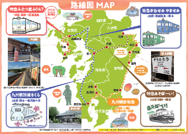・九州は乗って楽しい列車たちの宝庫ですね。新たに特急ふたつ星4047も加わり、ますます楽しみが増えました。土地土地をめぐって様々な文化に触れるだけでなく、駅のバックヤード見学など、旅行企画ならではのメニューもあってお得感いっぱいですね。盛りだくさんに楽しまれたようで、参加された皆さんが羨ましい!