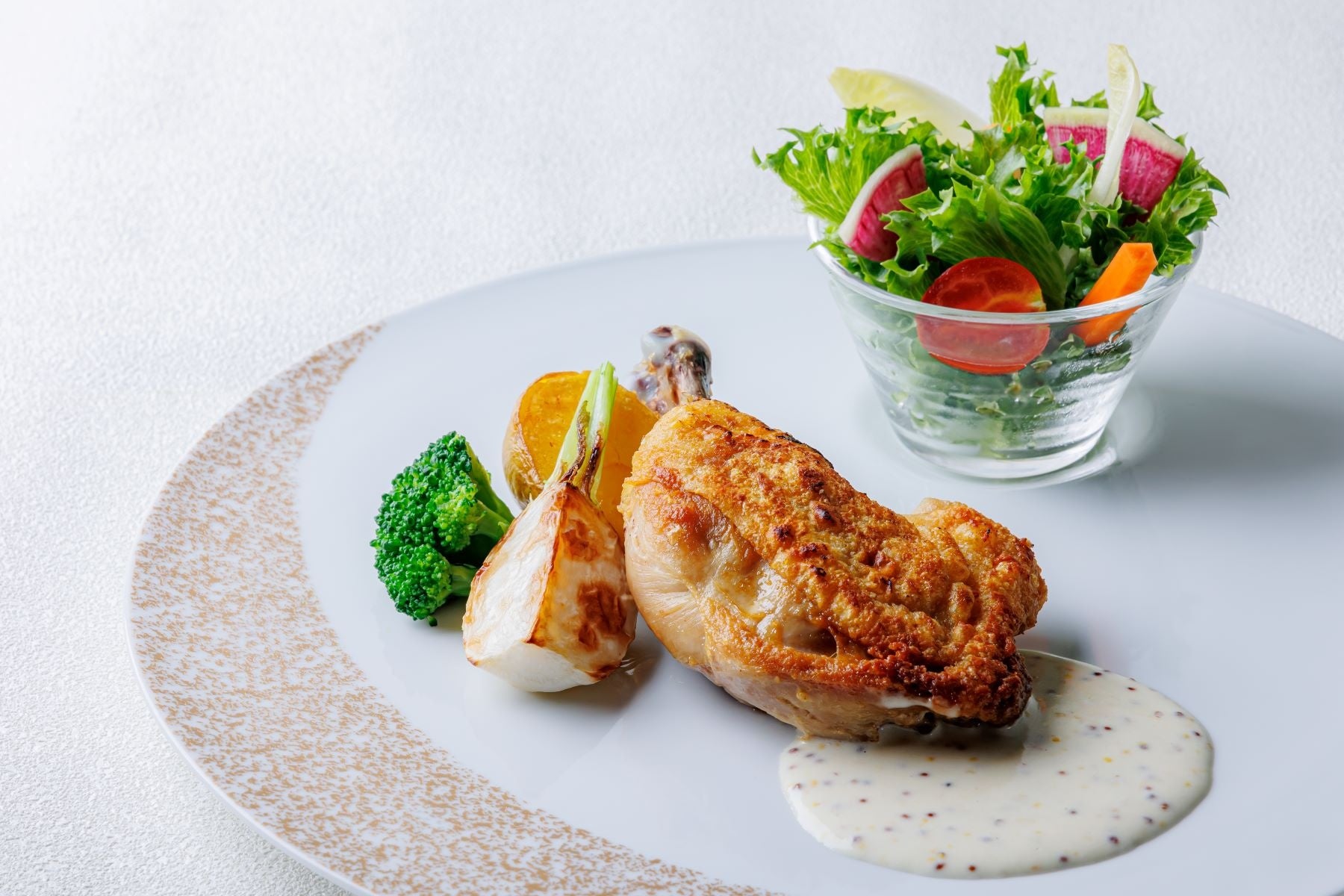 ランチプレート:骨付き鶏もものロースト マスタードクリームソース /サラダ/バゲット 1,500円