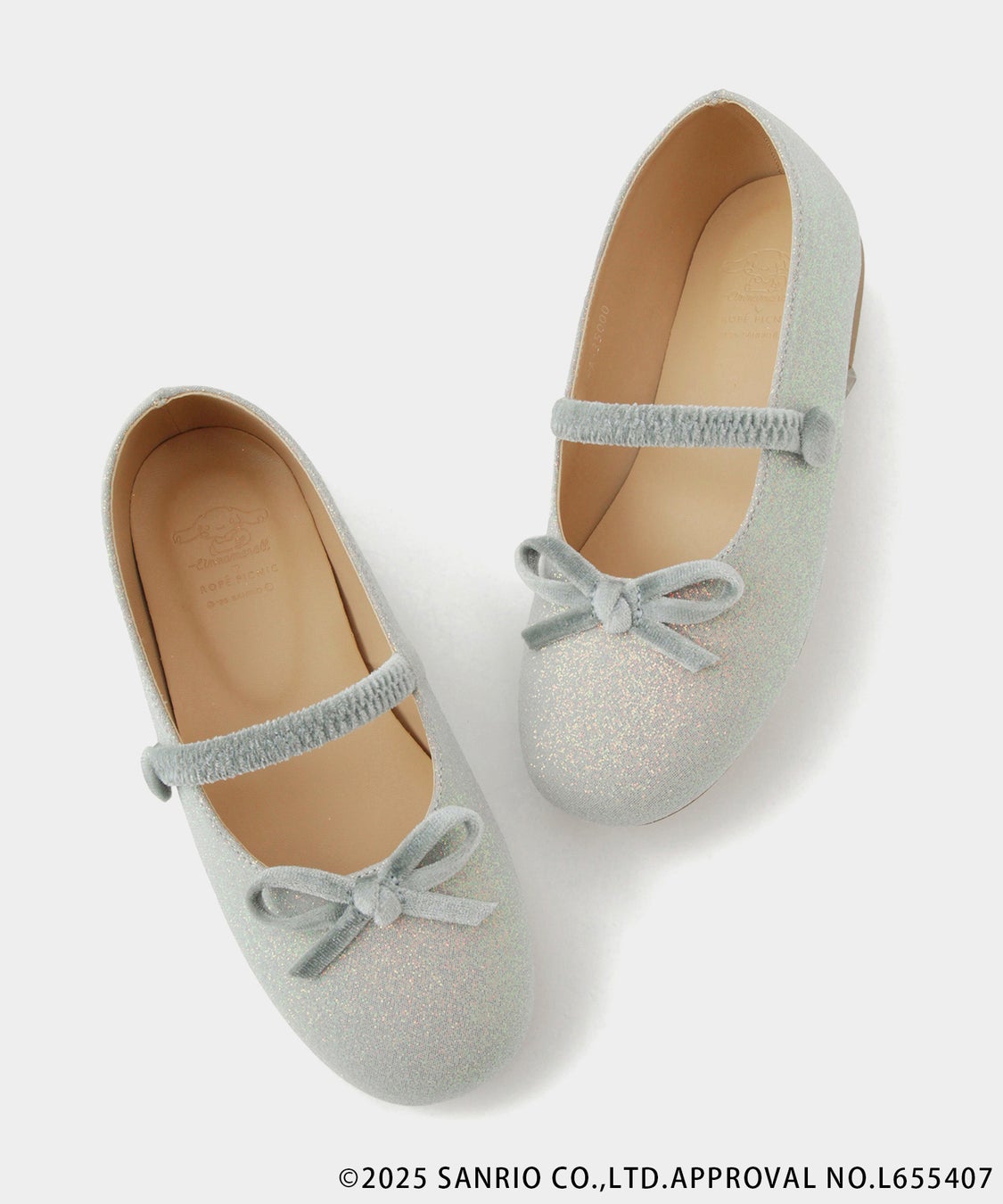「シナモロール」と「クロミ」がインソールにデザインされた、キッズ用バレエシューズ。