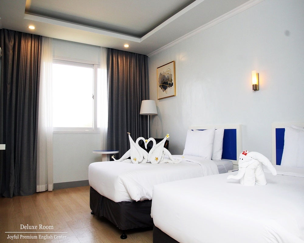Joyful Educationは、セブ・マクタン島のT-Shine Hotel内に位置し、親子留学に最適な環境です。自然豊かなロケーションにあり、ホテル内で安全かつ清潔な環境で英語を学ぶことができます。ピークシーズンには親子留学専門校として、多くの家族が安心して学び、遊びを楽しんでいます。