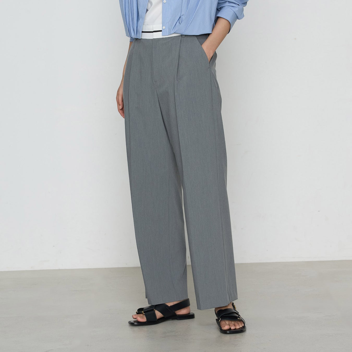 ベルトデザインが活きるようにショート丈トップスと合わせたり、トップスをインして着ると旬なスタイリングが完成します。ベルトデザインが隠れるようにトップスをアウトして着ると、ベーシックでシンプルなパンツとして着用できます。旬なスタイリングもベーシックなスタイリングも、どちらも叶う汎用性の高いデザインです。