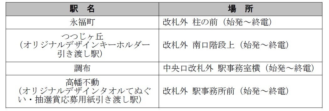 当企画を立案した京王電鉄の社員と景品(キーホルダー・タオル)をデザインした田渕周平氏