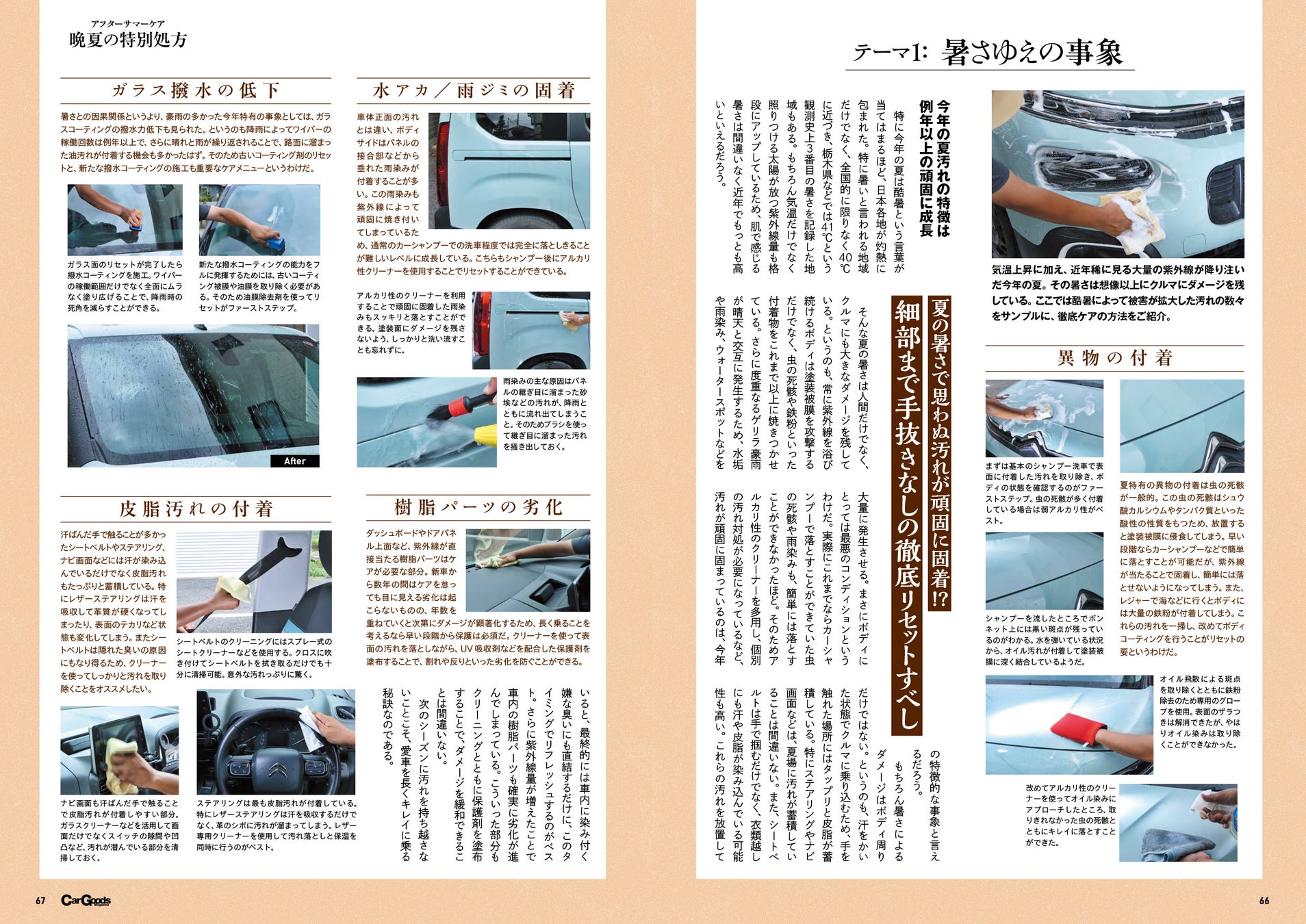 何かとダメージを受けがちな夏終わりの愛車を巡る、カーケア指南術も誌面後半にて収録。コンディションキープのための、ケアの要所をここで確認!