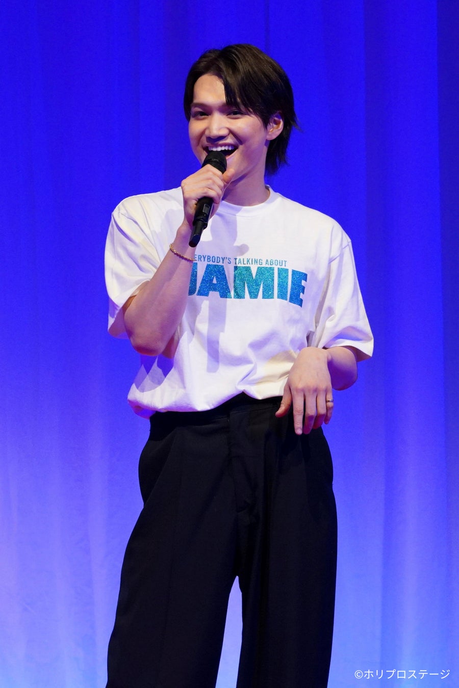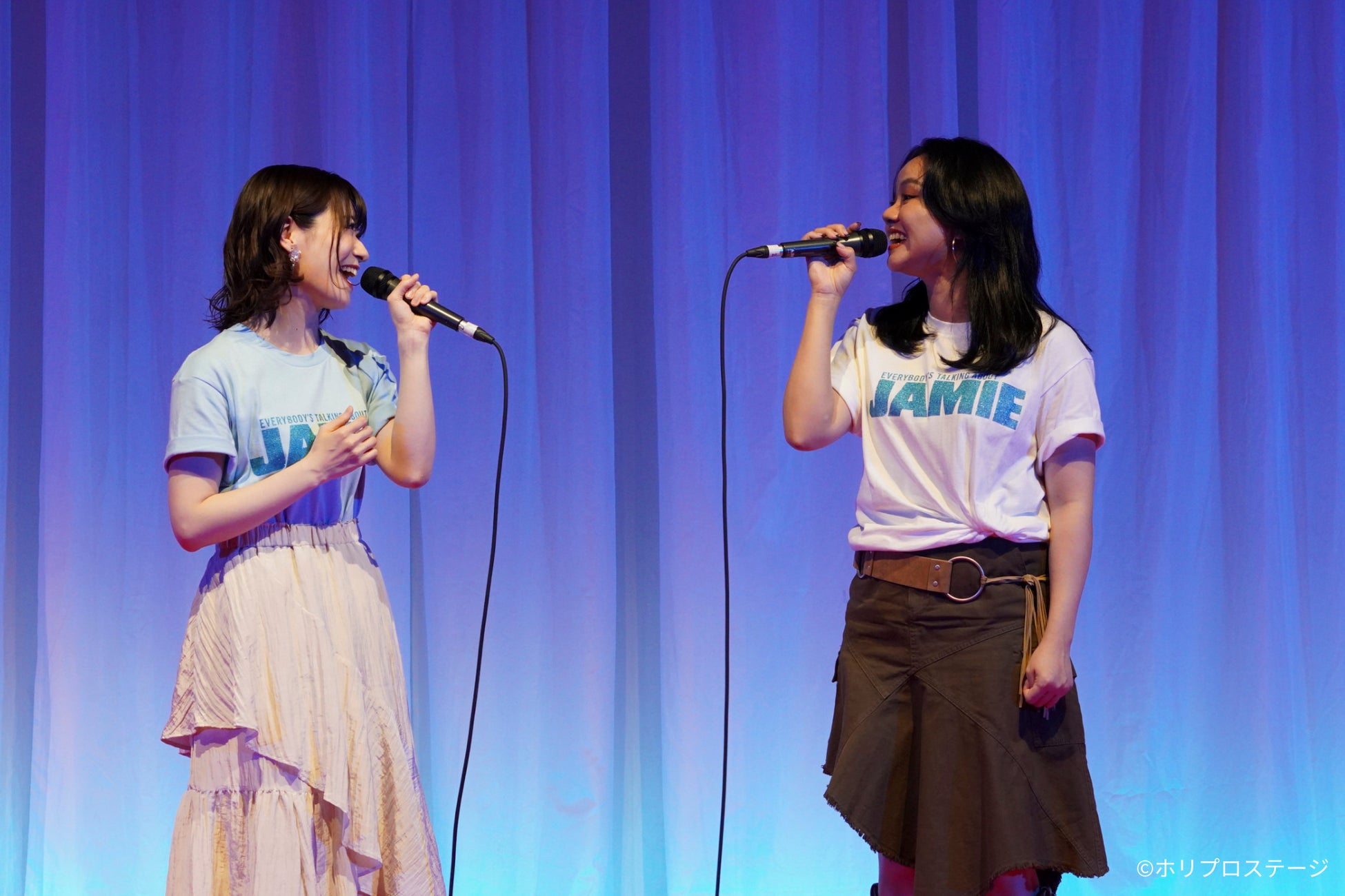 2曲目の「ビューティフル」は、ジェイミーの親友・プリティのソロナンバー。こちらも初参加の唯月ふうか、遥海が、抜群の歌唱力で伸びやかに歌い上げる。三浦が「自信をなくしたジェイミーに、ありのまま生きることの大切さ、美しさを教えてくれるナンバーです」と紹介した通り、この美しく、強く、優しい応援歌は、ジェイミーだけでなく、きっと観客の背中をも押してくれるはず。