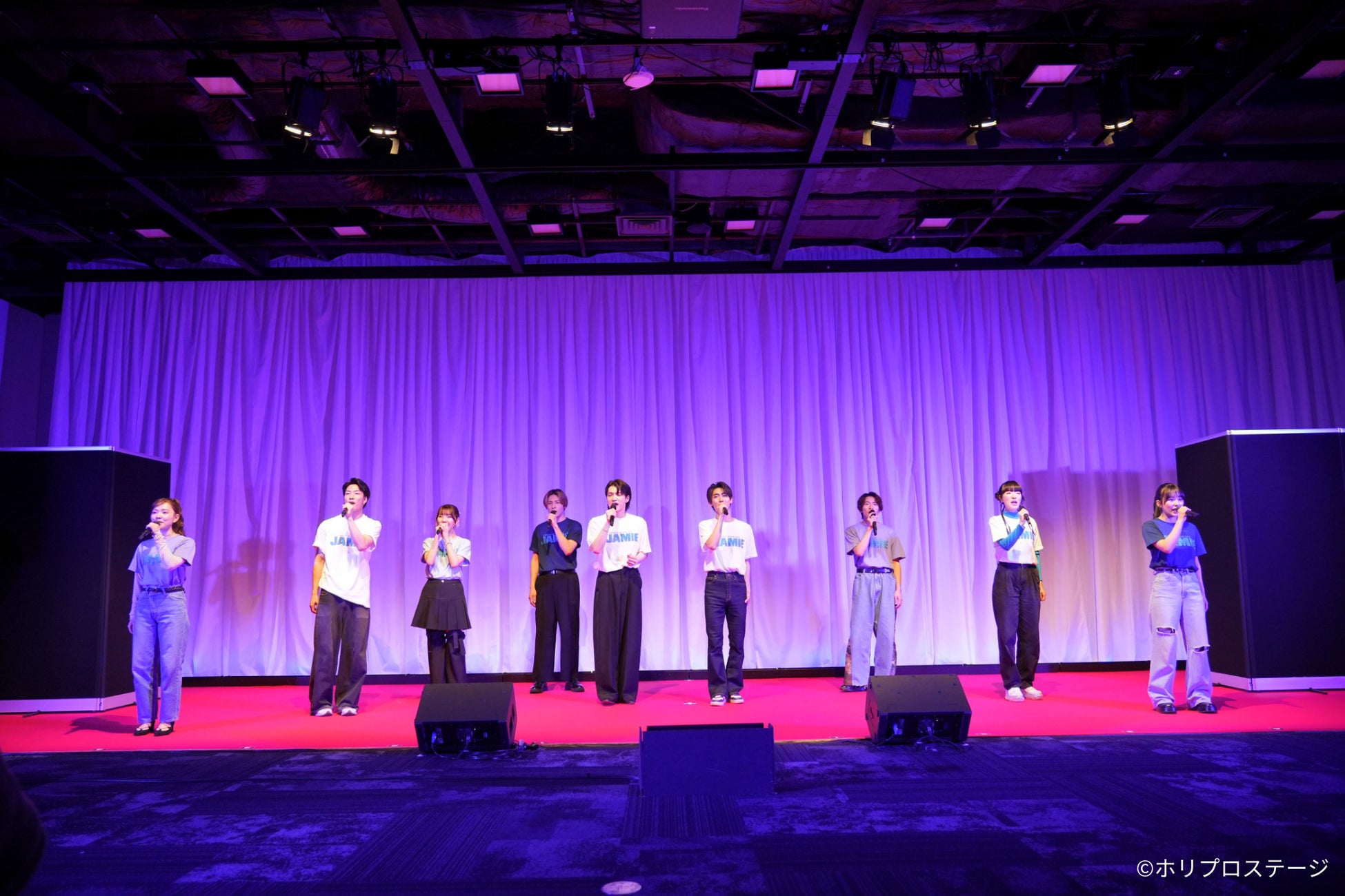 現在、東京・日比谷で開催されている都市型エンタメフェス「日比谷フェスティバル2025」。そのプログラムのひとつで、ミュージカルなどのショーケースを披露する「ステップショー」に、ミュージカル『ジェイミー』カンパニーが参加した。あいにくの天候のため室内での開催となったが、その分、選ばれたオーディエンスのみが参加できる、非常にレアで贅沢なひと時となった。