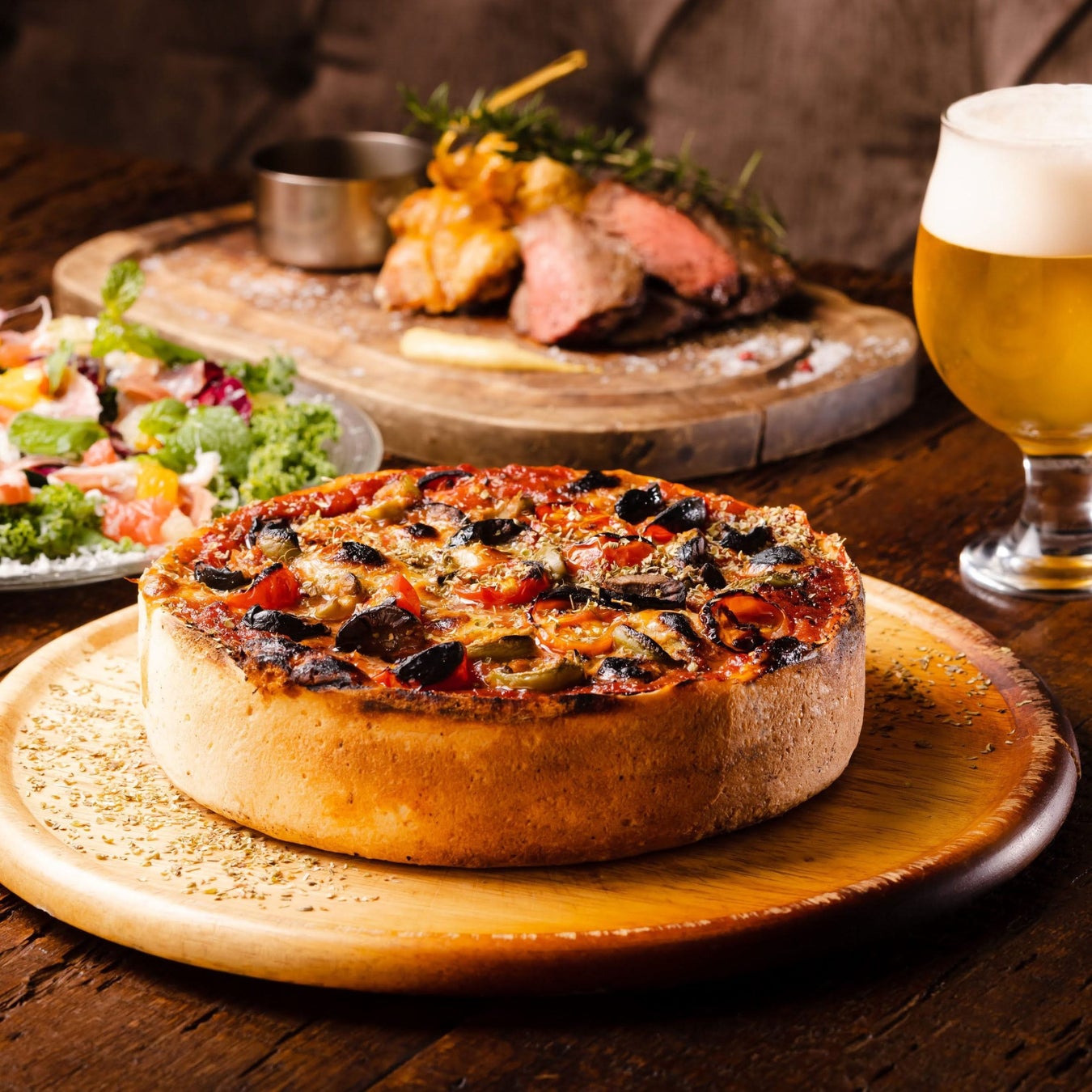 生地から練り上げるシカゴピザに直輸入樽生ベルギークラフトビール。シャンデリアで彩られた上質なモダン空間で大切な方とご観劇とともにお楽しみください。