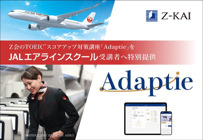 株式会社増進会ホールディングス(Z会グループ)のグループ会社である株式会社Z会は、日本航空株式会社が運営する、航空業界への就職を希望する18歳以上を対象にした「JALエアラインスクール」の受講者に「TOEIC®対策講座Adaptie(アダプティ)」を特別価格で提供しています。提供開始は2024年2月15日(木)です。