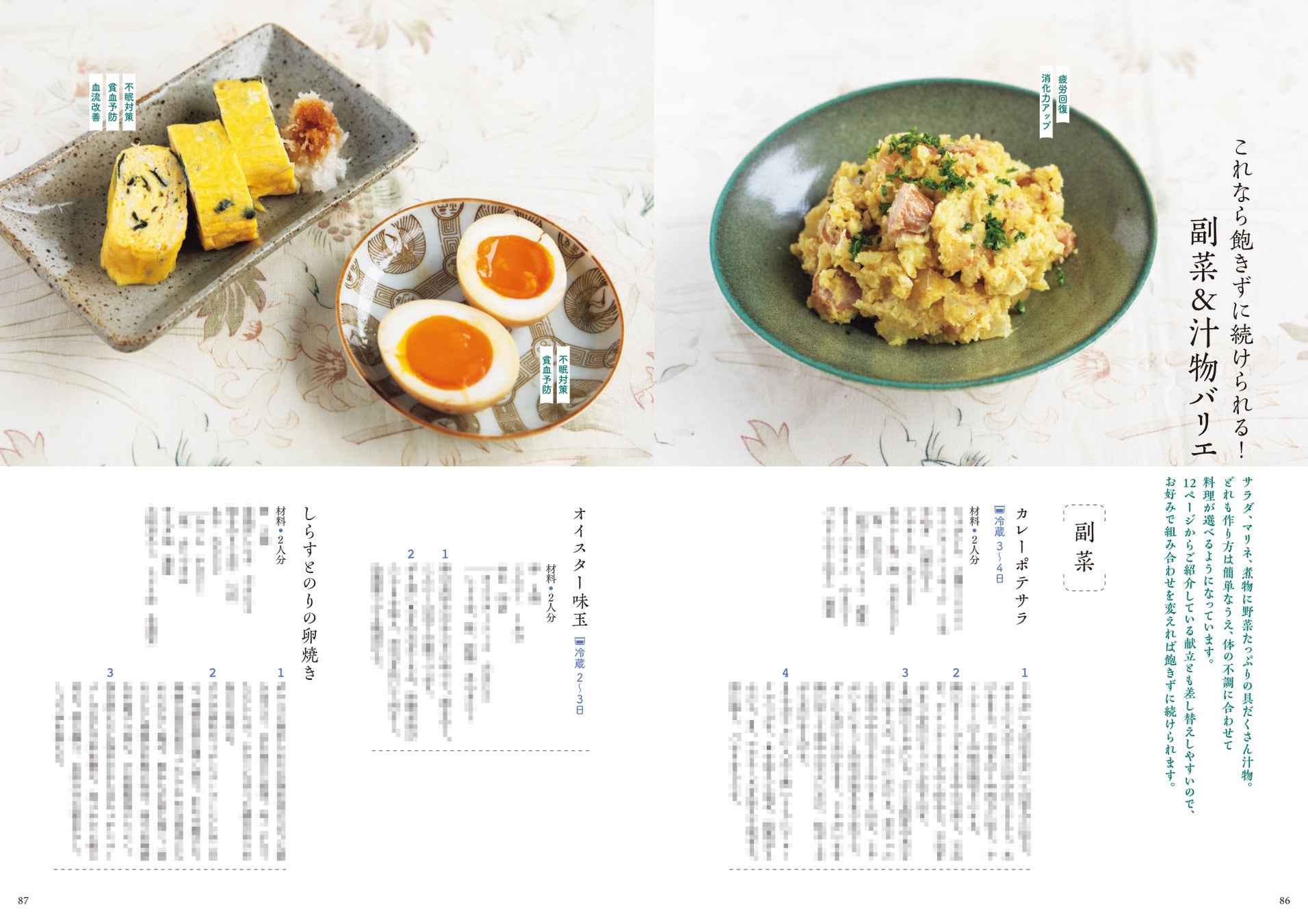 さらに同じ献立を繰り返していると味に慣れてしまい、飽きやすくなります。副菜や汁物を入れ替えられる「差し替えレシピ」も掲載。バリエーションメニューの中からお好みで組み合わせを変えれば、気分もリフレッシュでき、楽しく食事を続けられます。