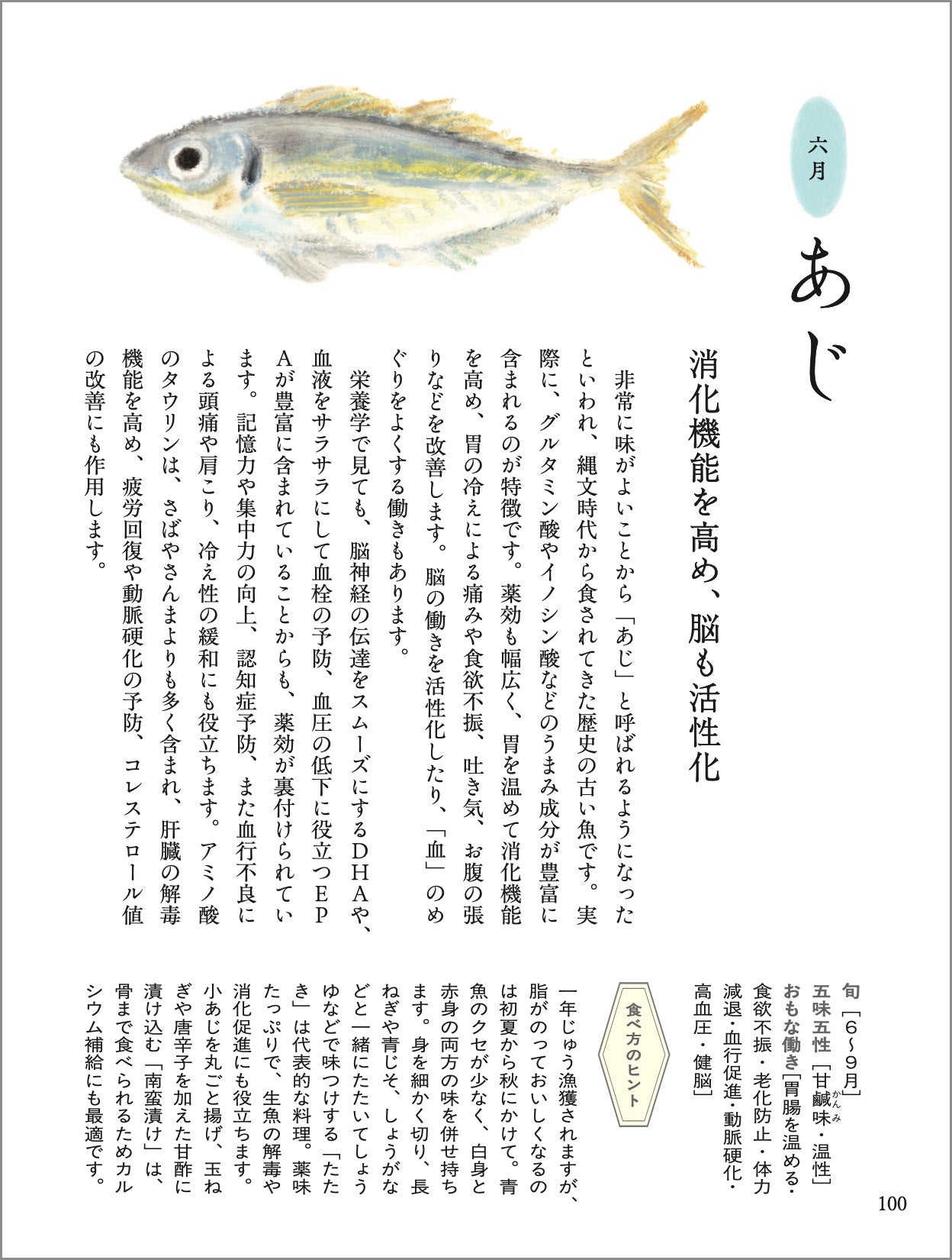 寒さで免疫力が下がる1月、血行が悪くなり「気」の巡りも悪くなって精神的に落ち込みやすくなる2月、梅雨時期の湿気で頭痛がする6月…。そうした月ごとの「気になる不調」と、それをやわらげてくれる食材、およびその食べ方のヒントについて解説。全編イラストでながめるだけでも癒される1冊です。
