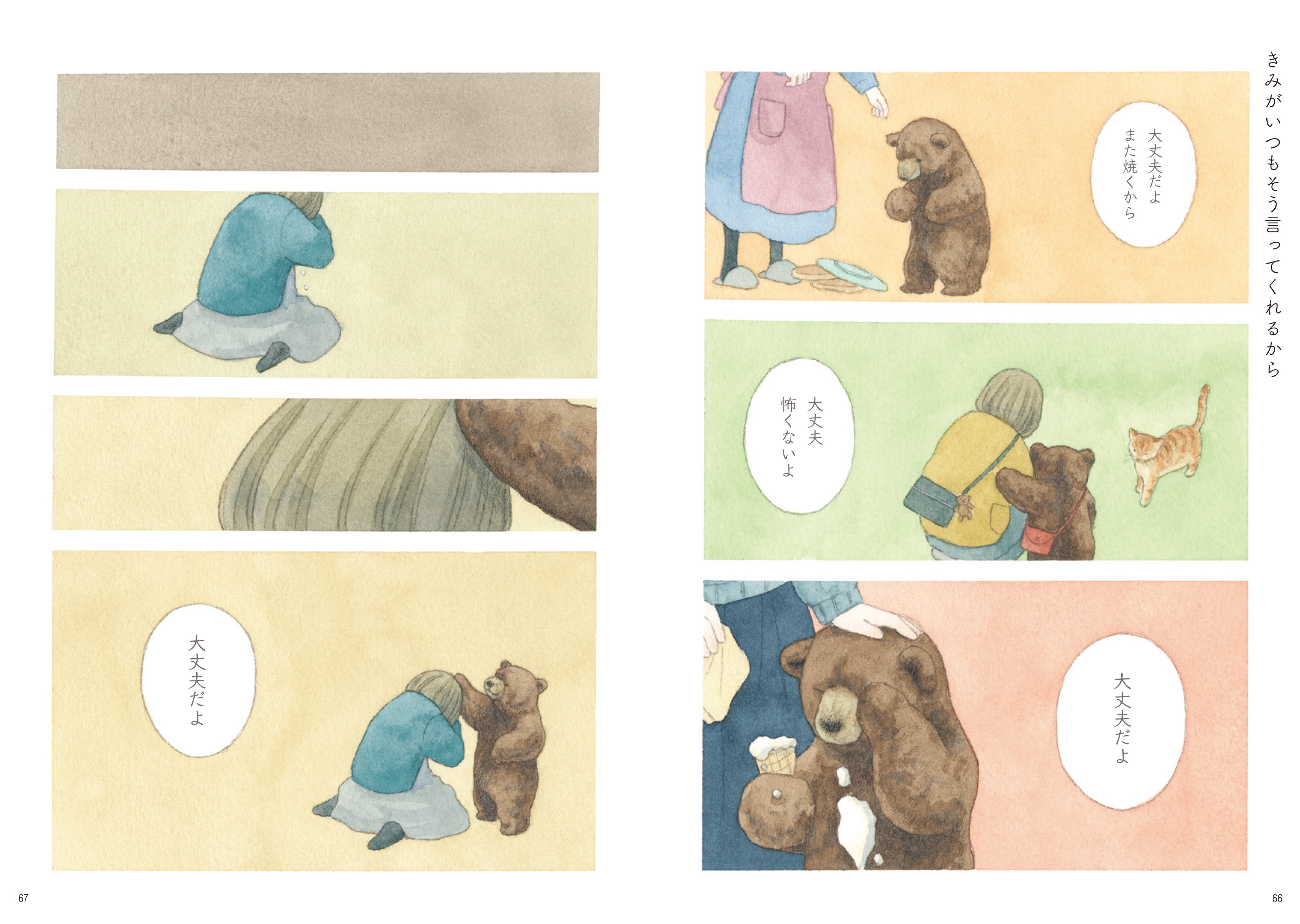 本作描き下ろしのショートコミックを収録。一つの物語はほんの数ページでありながら、その世界は濃密。しろくまをはじめとする動物たちとの交流はささやかな日常であり、しかし、かけがえのないひとときの物語として刻まれていきます。