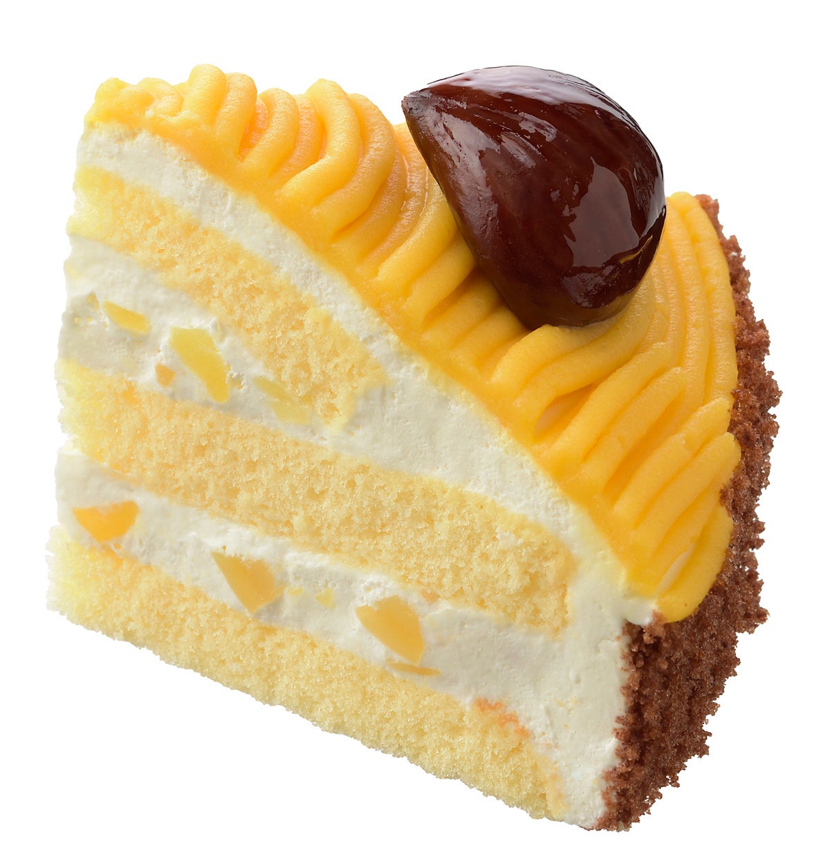 特長:銀座コージーコーナーで人気ベスト3に入る、黄色いモンブランがホールタイプで登場。マロンダイス入りホイップクリームをスポンジでサンドし、2種の栗の甘露煮を飾りました。栗の豊かな味わいを心ゆくまでお楽しみください。