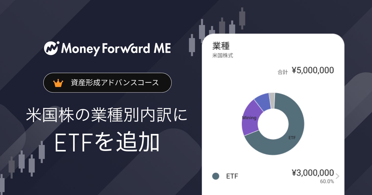 『マネーフォワード ME』プレミアムサービス「資産形成アドバンスコース」がアップデート。業種別ポートフォリオでの米国ETF(※1)の表示に対応へ