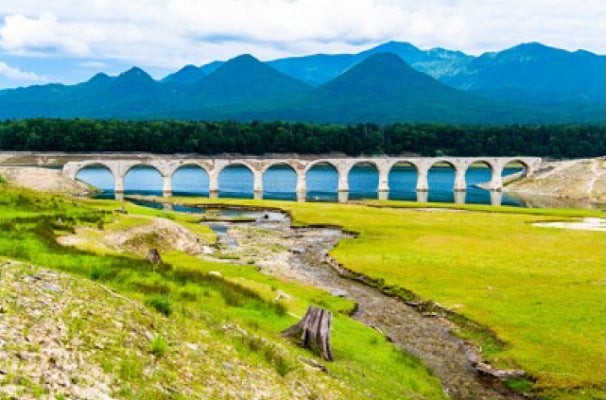 新たに幻の橋と呼ばれるタウシュベツ川橋梁の特別観光を盛り込んだ、貴重でオンリーワンな北海道の旅をご用意しました。上士幌の広大な大地の牧場で過ごす「牧場ランチ」や、11連アーチが湖面に映る優美なタウシュベツ川橋梁、阿寒湖、そして上川の山々など美しく表情豊かな美を心ゆくまでお楽しみいただきます。
