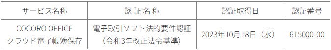 『COCORO OFFICE クラウド電子帳簿保存』がJIIMA認証(※2)「電子取引ソフト法的要件認証」を取得