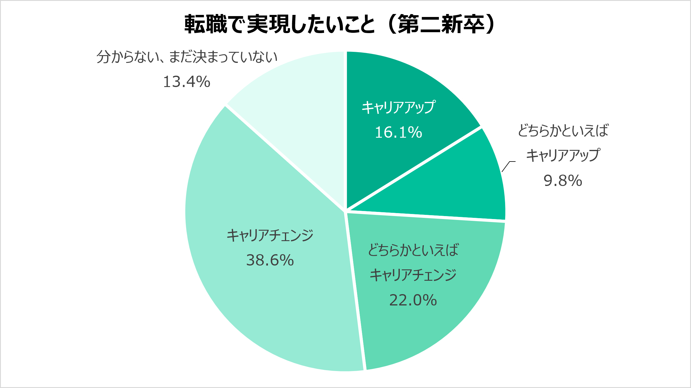 社会人経験3年未満の「第二新卒」は、60.6%が「キャリアチェンジ」を希望。第二新卒では、経験業種・職種と異なる仕事への挑戦を希望する人が6割を超えます。「キャリアアップ」を希望する割合は、25.9%でした。