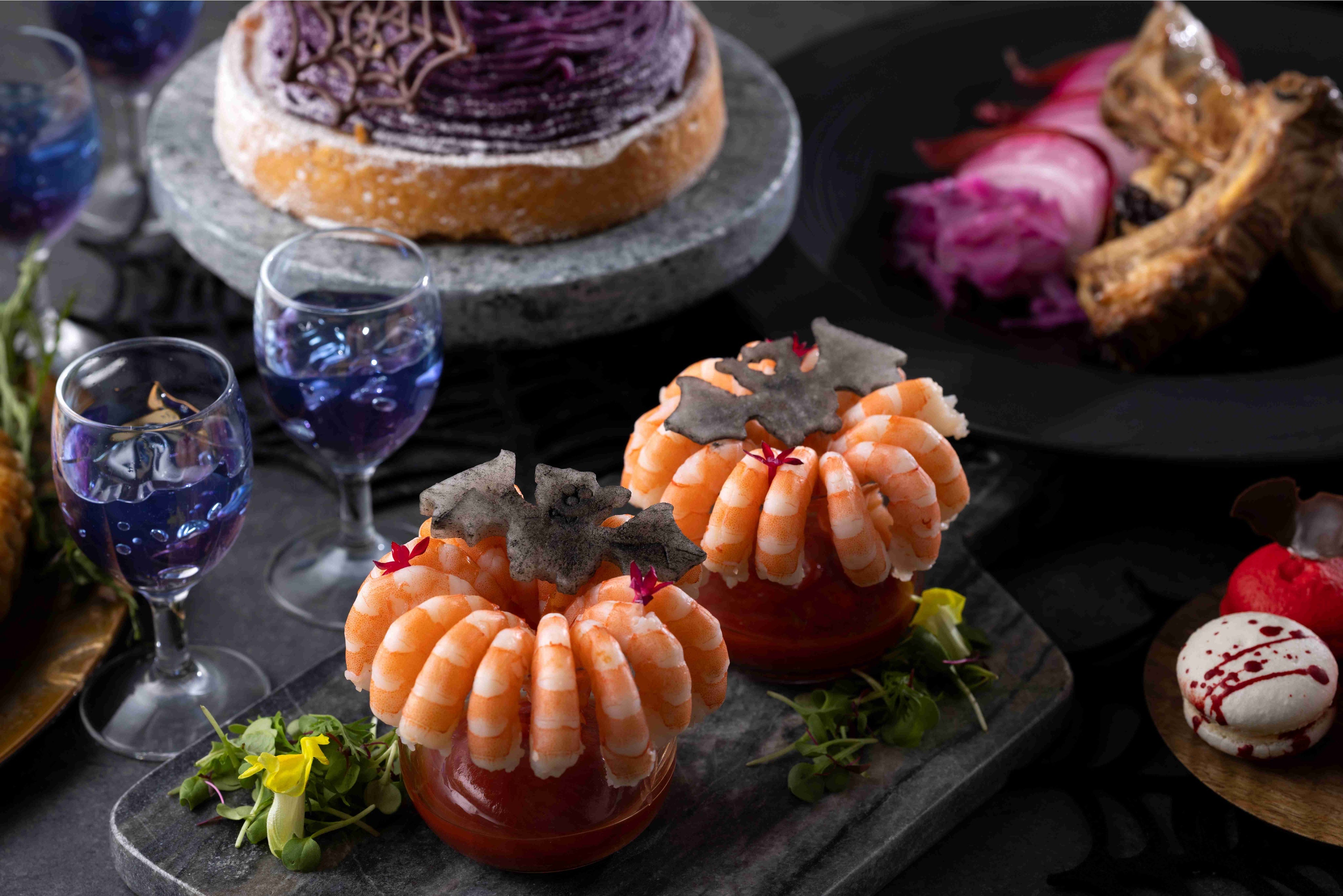 シェフたちのアイデアが詰まった、コワくてかわいいお料理やスイーツが皆さまをお出迎えします。お食事のほか、ハロウィーンをイメージしたカクテルや、当日までのお楽しみイベントもご用意します。