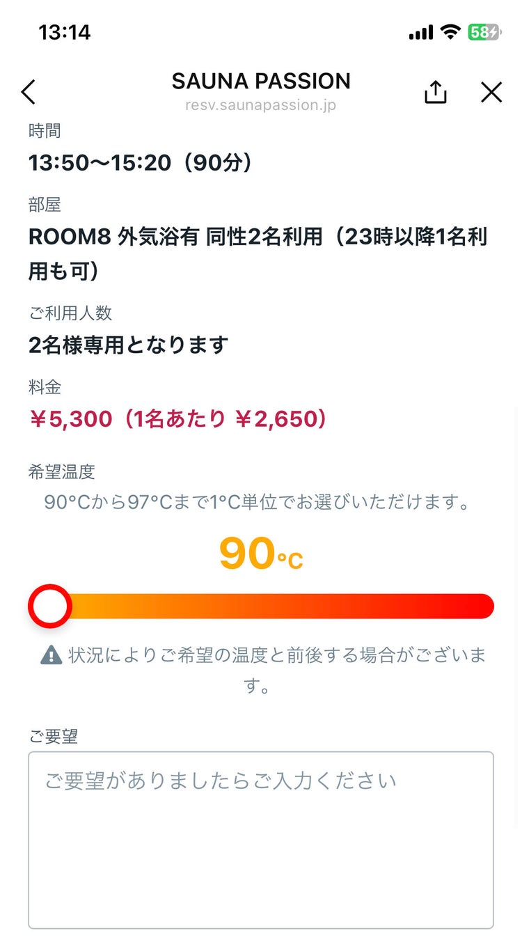 遂にWEB予約の際、簡単に90-97℃の中で1度単位で希望申請ができるようになりました。