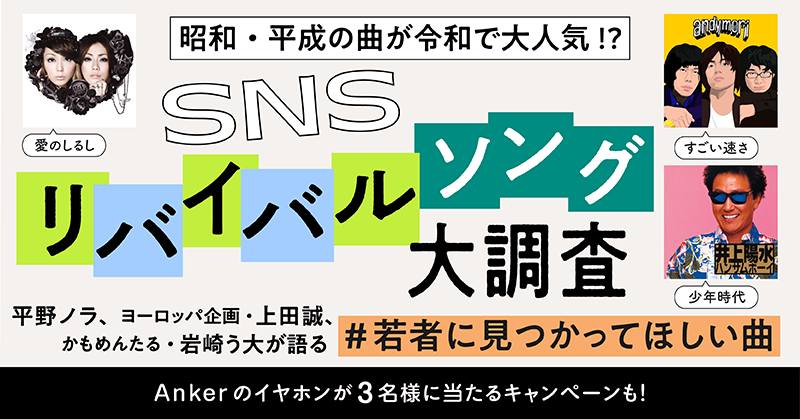 内容:X(旧Twitter)でハッシュタグ「#若者に見つかってほしい曲」をつけた上で、若者に聴いてほしいあなたの好きな楽曲や今後SNSでリバイバルしそうな楽曲について投稿いただいた方の中から、抽選で3名さまにAnkerのワイヤレスイヤホンをプレゼントします。