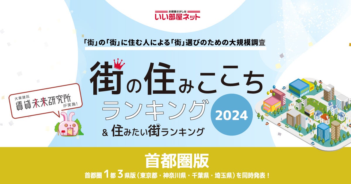 •新聞・雑誌、テレビ・ラジオ等の報道関係者におかれましては、本リリースを掲載・報道または引用する場合には、「いい部屋ネット 街の住みここちランキング&住みたい街ランキング2024<東京都版>」と出所の表記をお願いします。