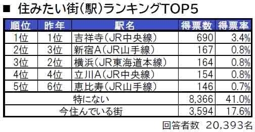 ■住みたい街(駅)トップは、6年連続で吉祥寺(JR中央線)