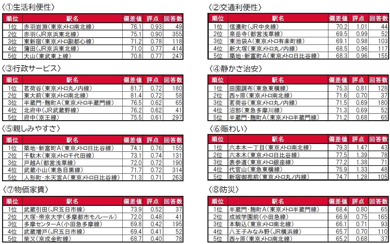 街の住みここち(駅)ランキング<駅:TOP20、因子別:TOP5>