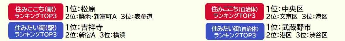 •「住みたい街(駅)ランキング」は、東京都居住者の2024年の回答を首都圏内の駅を対象にしてランキングを集計しています。「住みたい街(自治体)ランキング」は、東京都居住者の2024年の回答を全国の自治体を対象にしてランキングを集計しています。