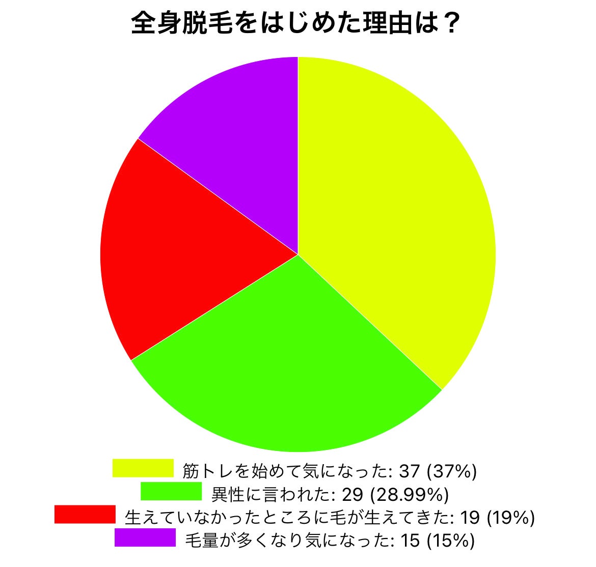 - Q1.全身脱毛をはじめた理由はなんですか?と質問したところ、