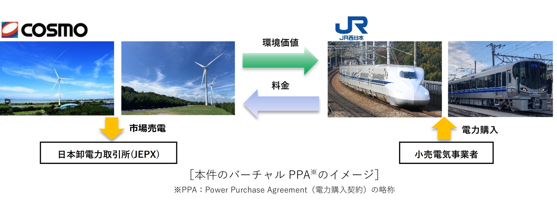 西日本旅客鉄道株式会社(代表取締役社長:長谷川 一明、以下「JR西日本」)、コスモエネルギーホールディングス株式会社(代表取締役社長:山田 茂)、コスモエコパワー株式会社(代表取締役