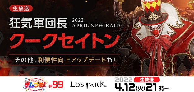 来る2022年4月12日21時(火)よりゲームオン公式生放送「Pmangのゲムづめ!#99」にて『ロストアーク』の生放送をお送りいたします。